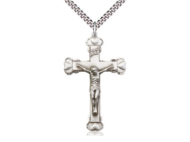 Large Sterling Silver Crucifix Pendant Necklace 1 3/4 x 1 1/8 - 24 Inch Chain