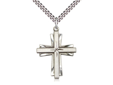 Embrace your faith with timeless elegance. This exquisite Sterling Silver Cross Necklace, measuring 1 1/4 X 7/8, is meticulously handcrafted in the USA by Bliss, a renowned name in religious jewelry. The durable 24-inch Sterling Silver curb chain gracefully drapes with a secure lobster clasp for a comfortable, everyday wear.