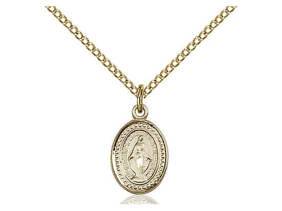 Small 14kt Gold Filled Miraculous Pendant Necklace 1/2 x 1/4 - 18 Inch Chain