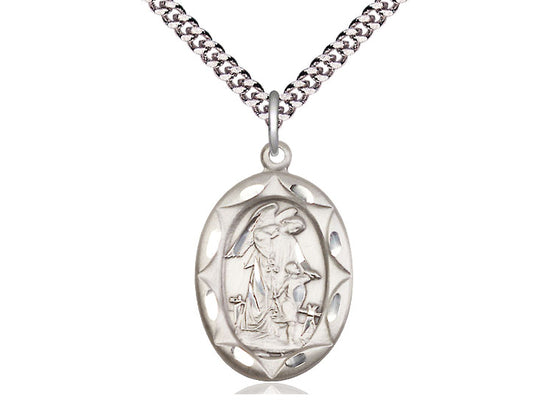 Sterling Silver Guardian Angel Pendant Necklace 1 x 5/8 - 24 Inch Chain