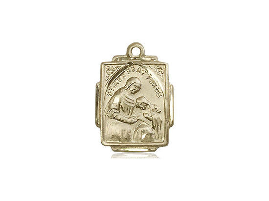 Embrace your faith with timeless elegance. This exquisite 14KT Gold Saint Ann Pendant, measuring 5/8 x 1/2, is meticulously handcrafted in the USA by Bliss, a renowned name in religious jewelry. The durable -inch 14KT Gold curb chain gracefully drapes with a secure lobster clasp for a comfortable, everyday wear. The Saint Ann is a patron saint of housekeepers, mothers.