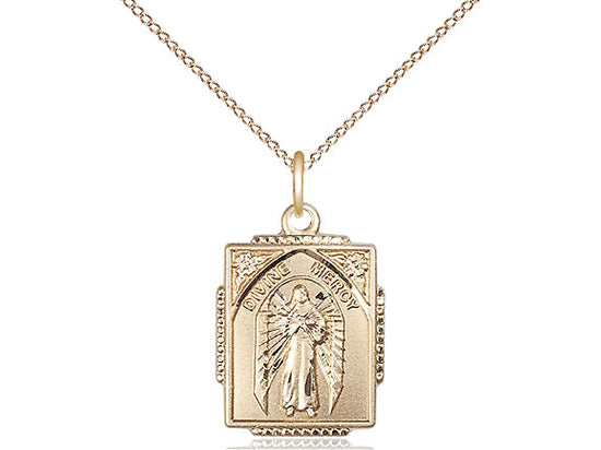 Small 14kt Gold Filled Divine Mercy Pendant Necklace 5/8 x 1/2 - 18 Inch Chain