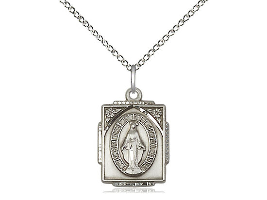 Small Sterling Silver Miraculous Pendant Necklace 5/8 X 1/2 - 18 Inch Chain