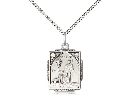 Sterling Silver St. Roch Pendant Necklace 3/4 x 1/2 - 18 Inch Chain
