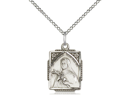 Small Sterling Silver St. Theresa Pendant Necklace 5/8 X 1/2 - 18 Inch Chain