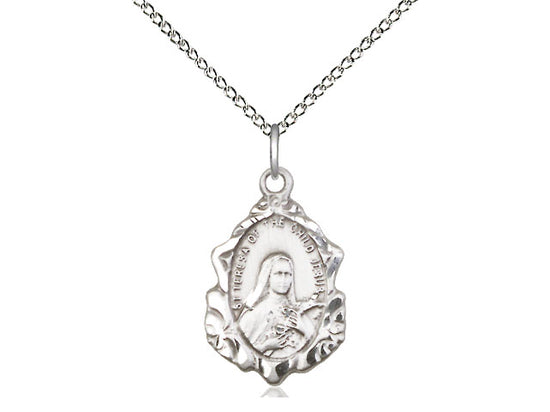 Sterling Silver St. Theresa Pendant Necklace 3/4 x 1/2 - 18 Inch Chain