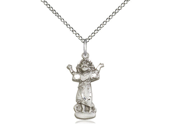 Sterling Silver Divino Nino Pendant Necklace 3/4 x 3/8 - 18 Inch Chain