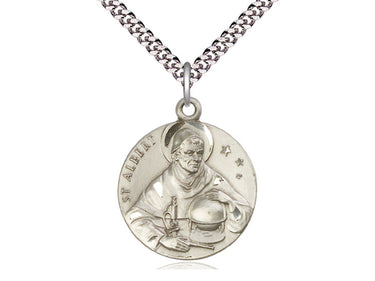 Sterling Silver St. Albert the Great Pendant Necklace 1 x 7/8 - 24 Inch Chain