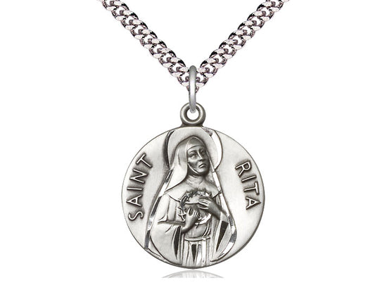 Sterling Silver St. Rita of Cascia Pendant Necklace 1 x 7/8 - 24 Inch Chain