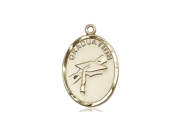 Embrace your faith with timeless elegance. This exquisite 14KT Gold Graduation Pendant, measuring 3/4 x 1/2, is meticulously handcrafted in the USA by Bliss, a renowned name in religious jewelry. The durable -inch 14KT Gold curb chain gracefully drapes with a secure lobster clasp for a comfortable, everyday wear.
