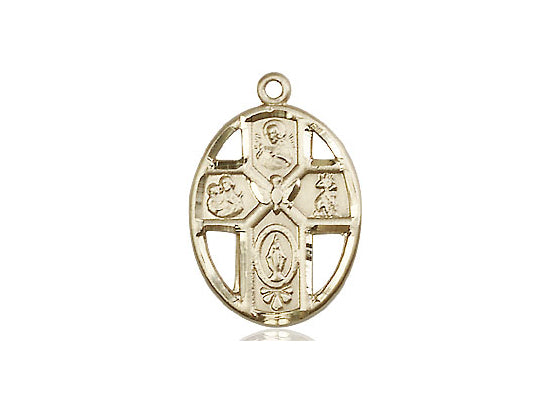 14kt Solid Gold 5-Way / Holy Spirit Medal 3/4 x 1/2