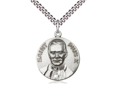 Sterling Silver Pope Pius X Pendant Necklace 1 x 7/8 - 24 Inch Chain