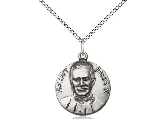 Sterling Silver Pope Pius X Pendant Necklace 3/4 x 5/8 - 18 Inch Chain