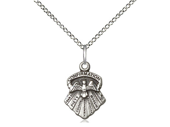 Embrace your faith with timeless elegance. This exquisite Sterling Silver Seven Gifts Necklace, measuring 5/8 x 3/8, is meticulously handcrafted in the USA by Bliss, a renowned name in religious jewelry. The durable 18-inch Sterling Silver curb chain gracefully drapes with a secure lobster clasp for a comfortable, everyday wear.