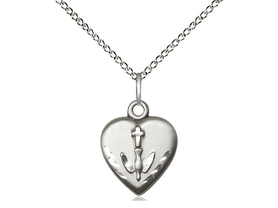 Small Sterling Silver Heart / Communion Pendant Necklace 5/8 x 1/2 - 18 Inch Chain