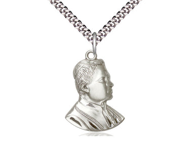 Sterling Silver Saint Pius X Pendant Necklace 1 x 3/4 - 24 Inch Chain