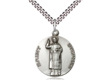 Sterling Silver St. Stephen Pendant Necklace 1 x 7/8 - 24 Inch Chain