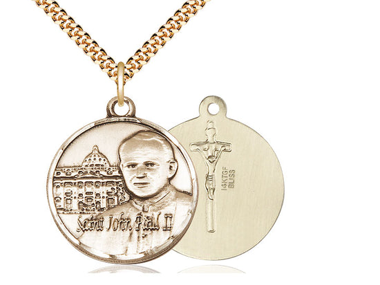 14kt Gold Filled St. John Paul II Pendant Necklace 1 x 7/8 - 24 Inch Chain
