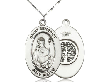 Sterling Silver St. Benedict Pendant Necklace 1 x 1/2 - 18 Inch Chain