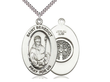 Sterling Silver St. Benedict Pendant Necklace 1 x 1/2 - 24 Inch Chain