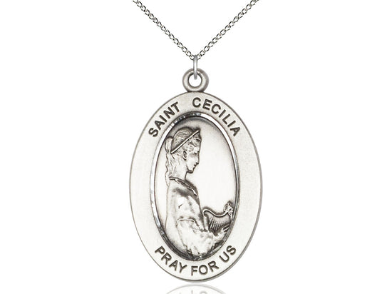 Sterling Silver St. Cecilia Pendant Necklace 1 x 1/2 - 18 Inch Chain