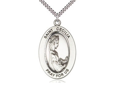 Sterling Silver St. Cecilia Pendant Necklace 1 x 1/2 - 24 Inch Chain