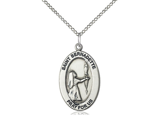 Sterling Silver St. Bernadette Pendant Necklace 1 x 1/2 - 18 Inch Chain