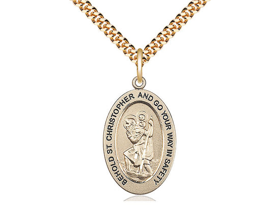 14kt Gold Filled St. Christopher Pendant Necklace 1 x 1/2 - 24 Inch Chain