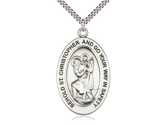 Sterling Silver St. Christopher Pendant Necklace 1 x 1/2 - 24 Inch Chain
