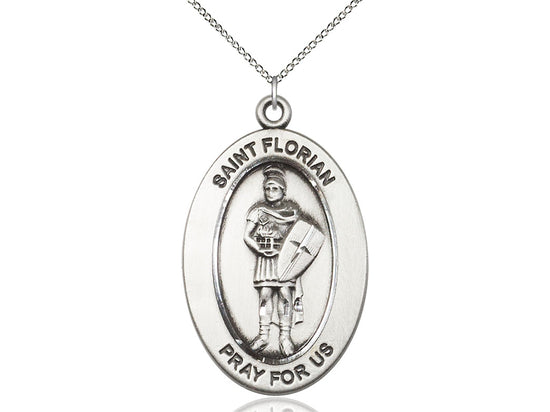 Exquisite Sterling Silver Saint Florian Necklace (1 x 1/2) on 18 Chain with Lobster Clasp - Handmade in the USA by Bliss
