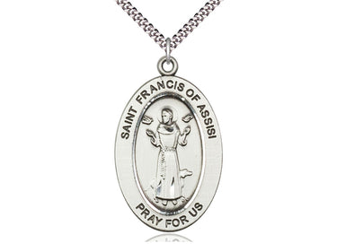 Sterling Silver St. Francis of Assisi Pendant Necklace 1 x 1/2 - 24 Inch Chain