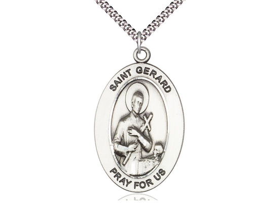 Sterling Silver St. Gerard Majella Pendant Necklace 1 x 1/2 - 24 Inch Chain