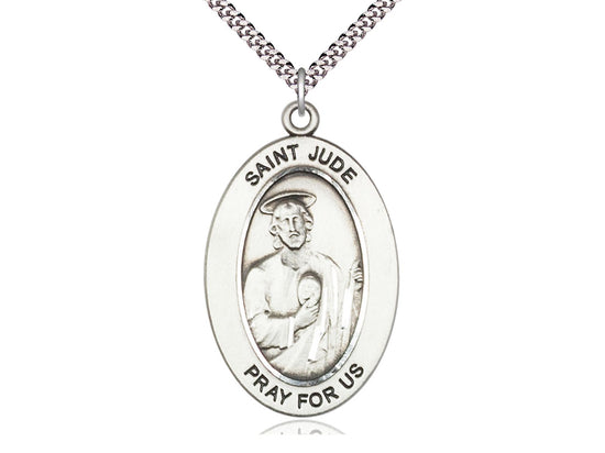 Sterling Silver St. Jude Thaddeus Pendant Necklace 1 x 1/2 - 24 Inch Chain