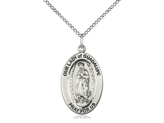 Sterling Silver Our Lady of Guadalupe Pendant Necklace 1 x 1/2 - 18 Inch Chain