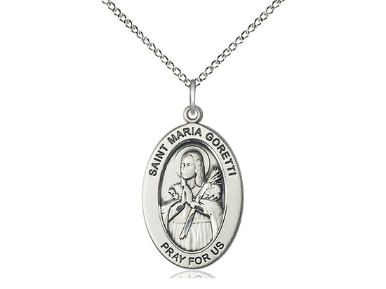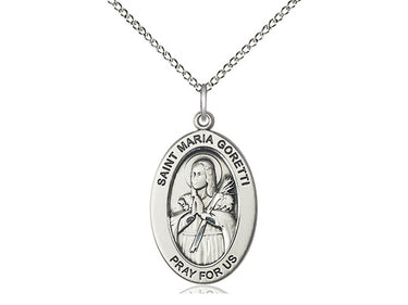 Sterling Silver St. Maria Goretti Pendant Necklace 1 x 1/2 - 18 Inch Chain