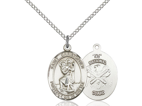 Exquisite Sterling Silver Saint Christopher/Nat'l Guard Necklace (3/4 x 1) on 18 Chain with Lobster Clasp - Handmade in the USA by Bliss