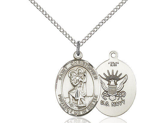 Exquisite Sterling Silver Saint Christopher/Navy Necklace (3/4 x 1) on 18 Chain with Lobster Clasp - Handmade in the USA by Bliss