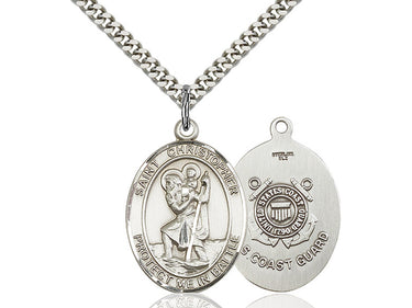 Embrace your faith with timeless elegance. This exquisite Sterling Silver Saint Christopher/Coast Guard Necklace, measuring 1 x 1 1/4, is meticulously handcrafted in the USA by Bliss, a renowned name in religious jewelry. The durable 24-inch Sterling Silver curb chain gracefully drapes with a secure lobster clasp for a comfortable, everyday wear. The Saint Christopher is a patron saint of travelers, motorists.