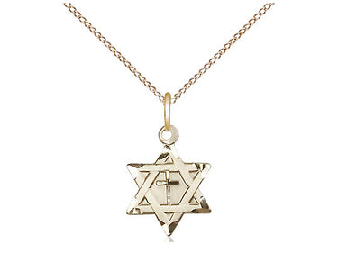 Small 14kt Gold Filled Star of David W/ Cross Pendant Necklace 1/2 x 3/8 - 18 Inch Chain