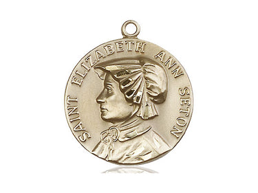 Embrace your faith with timeless elegance. This exquisite 14KT Gold Saint Ann Pendant, measuring 1 x 7/8, is meticulously handcrafted in the USA by Bliss, a renowned name in religious jewelry. The durable -inch 14KT Gold curb chain gracefully drapes with a secure lobster clasp for a comfortable, everyday wear. The Saint Elizabeth Ann Seton is a patron saint of loss of parent or child.