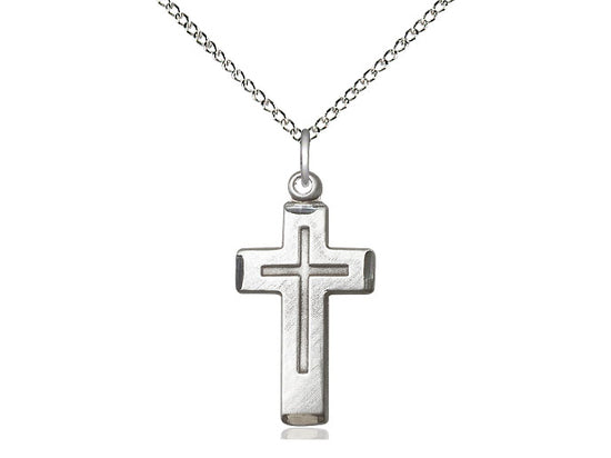 Sterling Silver Cross Pendant Necklace 7/8 x 1/2 - 18 Inch Chain