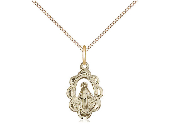 Small 14kt Gold Filled Miraculous Pendant Necklace 1/2 x 3/8 - 18 Inch Chain
