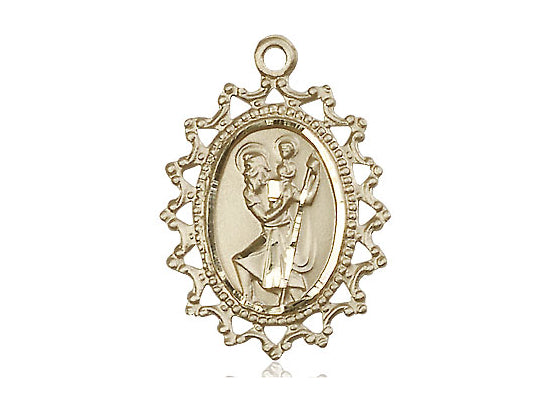14kt Solid Gold St. Christopher Medal 1 x 3/4