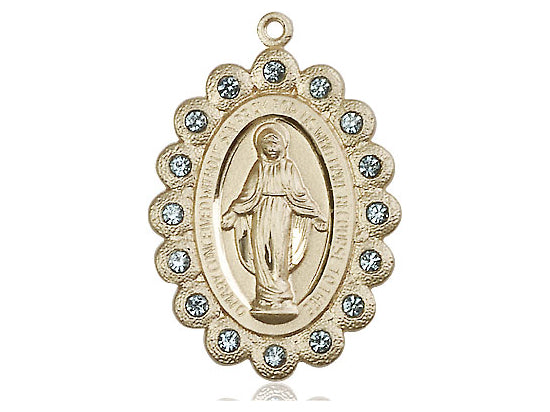14kt Solid Gold Miraculous Medal 1 1/8 x 3/4