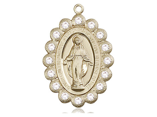 14kt Solid Gold Miraculous Medal 1 1/8 x 3/4