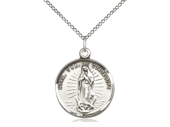 Sterling Silver Our Lady of Guadalupe Pendant Necklace 7/8 x 3/4 - 18 Inch Chain
