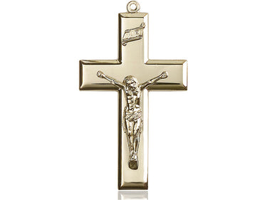Extra Large 14kt Solid Gold Crucifix Medal 1 7/8 x 1