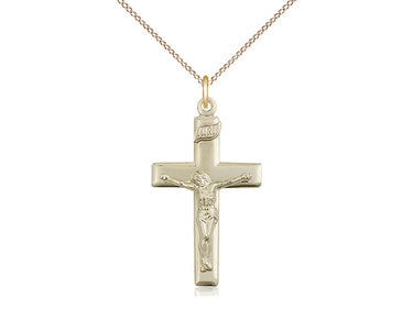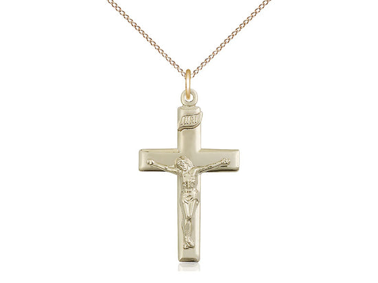 14kt Gold Filled Crucifix Pendant Necklace 1 1/8 x 5/8 - 18 Inch Chain