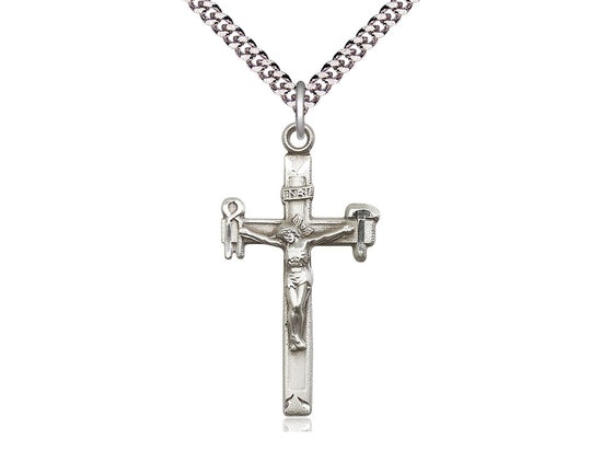 Large Sterling Silver Crucifix Pendant Necklace 1 3/8 x 3/4 - 24 Inch Chain