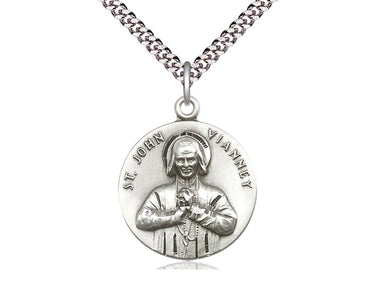 Sterling Silver St. John Vianney Pendant Necklace 1 x 7/8 - 24 Inch Chain